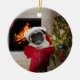 Happy Christmas Pug Misha with Bow Ceramic Ornament