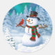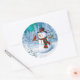 Happy Christmas Snowman & Birds Winter Scene Classic Round Sticker
