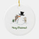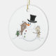 Happy Christmas Snowman Illustration Ceramic Ornament