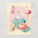 The design features a Chuseok rabbit with lotus blossom, lanterns, full moon and traditional green rice cake.
