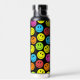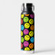 The bottle looks even better in real life. The ice cubes I put in lasts all day! I have my bottle with me all the time. It's summer and having something cold to drink feels amazing. With this bottle I always have something super cold. I have only tried the hot drink once and it lasted a long time as well. The color blue is a navy blue and the white printed on it is vibrant. It printed perfectly. I love my personalized smile water bottle.