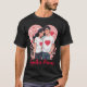 A sweet illustration of a loving couple wearing matching white shirts with red hearts, standing close together in a warm embrace. Surrounded by a heart-filled background, this artwork radiates love, happiness, and togetherness—perfect for Valentine's Day and romantic gifts.