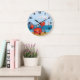 Keep time with a touch of seaside charm with this cartoon crab clock. The design features the adorable, smiling red crab prominently on a sunny beach, with the blue ocean and a distant striped lighthouse providing the perfect coastal scene. This decorative clock is ideal for adding a fun nautical theme to a kitchen, child's room, bathroom, or beach house decor. It’s a great functional piece of wall art for anyone who appreciates cheerful marine life and coastal accents.