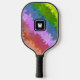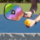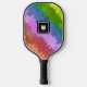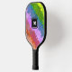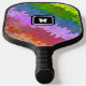 Happy Crazy Retro Rainbow Flowers with Initial Pickleball Paddle
