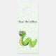 This paper door hanger is white with vibrant green polka dots and a cute happy cartoon snake that is bright green with a yellow stomach. Customise your text on the front and back with the template.
