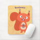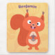 This cute, happy red squirrel is ready to eat an acorn. Drawn in cartoon illustration style for nutty fun!