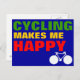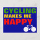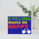 'Cycling makes me happy' words with the image of a white bicycle. Write about biking