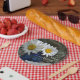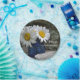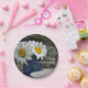 This anniversary plate features pretty daisies in a cobalt blue ink well resting on a rock ledge