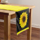 A 14X72 table runner with a photo of a yellow daisy against a blacked-out background