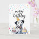 Happy Dalmatian Dog holding Cakes Birthday Card