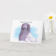 This is a humorous card for someone finalising their divorce. It depicts watercolour artwork by Australian artist Donnalee Collins. The front cover has the words "Happy divorce day" with the face of an Australian magpie and inside shows a swooping magpie with the words "Can I swoop em now?". The Australian magpie is renowned for swooping people as they pass by to protect its young.