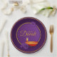 Happy Diwali Diya Candle Purple Gold 9" Paper Plate