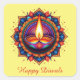 Happy Diwali Mandala Diya Festival of Light Yellow Square Sticker