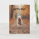 Happy dog on a dirt path in an autumn woods for Happy Fall.