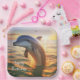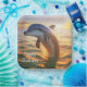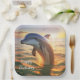 These paper plates feature a happy dolphin playing at sunrise.