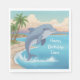 These napkins, featuring a joyful dolphin, are perfect for a boy or girl birthday party. Text can be changed or removed.