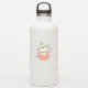 Kawaii cat sitting in a pink frosted doughnut with a small leaf, smiling with rosy cheeks, surrounded by stars and hearts.