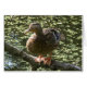 A happy looking Mallard hen sits on a branch taken at Roath Park Lake, Cardiff.