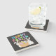 The coasters are gorgeous, a quality feel and heavy weight. They look like a precious archeological find. A rustic stone juxtaposed with a modern floral black and white print. I like the way the print goes slightly imperfect on the cut stone edges giving them a kind-of natural beauty.