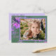 Happy Easter abstract floral art photo frame card. The flowers are shades of pinks and purples. A sage green vine runs through the design and the overall background is dark sage green. This card is beautifully bright yet calming. Your photo is framed with pink and purple. There is a delicate purple dragonfly on both the front and back. The front reads: Happy Easter. The back reads: From our family to yours, we wish you health, sunshine, laughter & love.