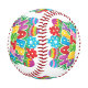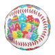 A colourful Easter themed baseball with Happy Easter Text and colourful eggs.