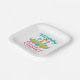 Beautiful personalised Happy Easter party paper plate for a Christian church celebrating Jesus Christ rising on Easter Sunday with pretty teal and pastel pink writing and crosses above a green field of flowers. Cute custom Easter holiday decor for an egg hunt with each cross and flower in lovely spring colours.