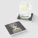 The coasters are gorgeous, a quality feel and heavy weight. They look like a precious archeological find. A rustic stone juxtaposed with a modern floral black and white print. I like the way the print goes slightly imperfect on the cut stone edges giving them a kind-of natural beauty.