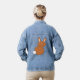 This awesome denim jacket features an adorable image of a happy Easter bunny created using vector art. The bunny is brown with a white tail. It has a big smile on its face just like an Easter bunny should.