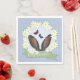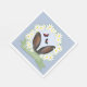 This Happy Easter napkin features a pretty floral daisies happy easter wreath with grey bunny ears and butterflies on a blue background.