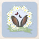 Happy Easter Bunny Ears Daisies Wreath Square Paper Coaster
