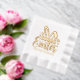 Happy Easter Bunny Ears Personalised Name Foil Napkins Real Foil Stamped Paper Napkins features the text "Happy Easter" in modern calligraphy script typography accented with love hearts, easter eggs and rabbit ears and personalised with your name or custom text. Perfect to celebrate Easter in style. Created by Evco Studio www.zazzle.com/store/evcostudio
