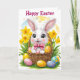 Happy Easter with this cute animals like easter bunny or baby chick. Join the easter egg hunt in spring with vibrant colours and joy, candy and a floral vintage fantasy. Cute rabbit with flowers. Customisable Greetings card.