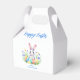 Make Easter unforgettable with our cute Easter gift boxes. The design features beautiful watercolor flowers, colourful eggs and a cute bunny rabbit, making it both stylish and charming. Use the design tools to customise the text.