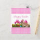 This Easter postcard features a pretty pink gingham design. In the centre of this card is a white element that features a cute bunny rabbit in a tulip flower garden. Above the classic holiday design is the greeting "Happy Easter" There is an Easter greeting on the backside that you may edit to add your own words.