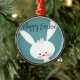 Happy Easter bunny rabbit on blue teal background Metal Tree Decoration