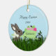Happy Easter Bunny w Wheelbarrow of Eggs Ceramic Ornament