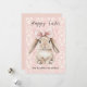 Happy Easter Bunny with Bow on Pink Damask Holiday Card