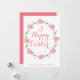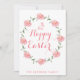 Personalised Happy Easter cards with pink bunny, wreath and customisable text where you can add your family name with pink back side of the card