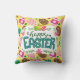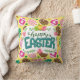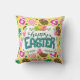 Happy Easter Colourful Easter Eggs Pattern Yellow Cushion