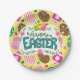 Happy Easter Colourful Easter Eggs Pattern Yellow Paper Plate