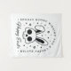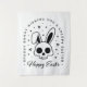 Creepy happy Easter wishes with a spooky bunny rabbit skull illustration. Gothic theme black and white aesthetic funny quotes greetings party decoration tapestry.