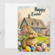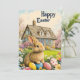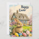 Happy Easter with this cute animals like easter bunny or baby chick. Join the easter egg hunt in spring with vibrant colours and joy, candy and a floral vintage fantasy. Cute rabbit with flowers. Happy Easter.