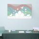 Cute pastel colours happy easter holidays design, cute chickens and hidden eggs on meadow, egg hunt bag