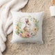 Watercolor Easter Bunny in the floral wreath Throw Pillow with vintage vibes. Matching items are available in my store - Kate Eden Art.
