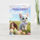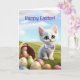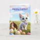 This adorable Happy Easter card features a sweet kitten surrounded by eggs, a basket, and fresh spring foliage, with customizable wording to make it your own.