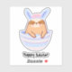 Our sticker showcases a loveable sloth wearing bunny ears, symbolising the spirit of Easter with its playful and endearing appearance. The charming portrayal of the sloth adds a whimsical touch to your Easter decorations. Personalise your Easter greetings by adding a name or changing the message.