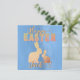 A beautiful blue card with orange silhouettes of rabbits in dotted style.