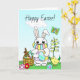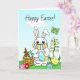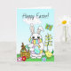 Happy Easter Card, great for 2021 during the pandemic. Hand drawn cartoon Easter Bunny in Facemask holding dyed eggs Easter Card.
