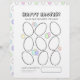 The back of this colouring page has a cute and colourful pattern of eggs matching the ones on the front. This sheet can be reused as wrapping paper for a small gift with its beautiful modern egg pattern background.