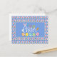 A Happy Easter Typography Greetings Postcard In Blue With Easter Gnomes And Coloured Eggs